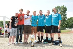 Mario nahm unter großer Begeisterung den Pokal entgegen und reckte ihn in den strahlenden Sommerhimmel. Genau 2 Jahre nach unserem ersten Turnier konnten wir nun endlich den ersten Turniersieg feiern. Dabei konnten nicht nur die Torschützen überzeugen. Vor allem die Defensive war der Garant für diesen Turniersieg. Eine Bilanz von 7 zu 0 Toren zeigt dabei die starke Leistung jedes Spielers des FSV.